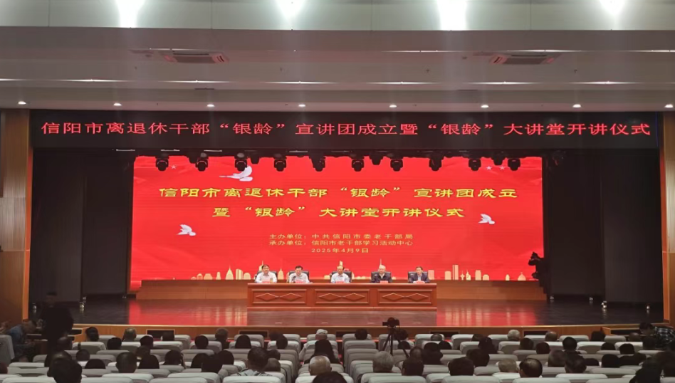 培育宣讲队伍。成立信阳市离退休干部“银龄”宣讲团,明确职责分工、细化工作方案,形成“统筹协调、上下联动、齐抓共管”的工作格局。举办信阳市离退休干部“银龄”宣讲团成立暨“银龄”大讲堂开讲仪式,为宣讲团成员颁发聘书,确保宣讲工作规范化、制度化。采取“基层推荐+个人自荐+定向邀约”相结合的方式,通过“试讲—考察—建档”流程,在全市遴选政治素质高、理论功底扎实、宣讲经验丰富的老同志。目前,宣讲团已吸纳退休干部、教授专家、典型模范等成员共计43人,平均年龄67岁,打造了一支“银发生辉、退而不休”的骨干队伍。