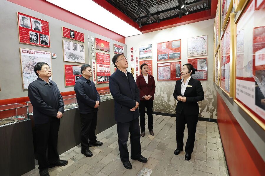 罗山县铁铺镇何家冲村是红二十五军长征出发地。刘宁察看旧址展厅,了解红军长征革命历史。“习近平总书记在信阳考察时专程来到鄂豫皖苏区首府,指出要讲好党的故事、革命的故事、根据地的故事、英雄和烈士的故事,把红色基因传承好,确保红色江山永不变色。”刘宁说,要牢记殷殷嘱托,弘扬大别山精神,赓续红色血脉,凝聚奋进力量,推动革命老区高质量发展。在有稻山房民宿,刘宁鼓励大家依托丰富的红色文化资源和绿色生态资源,做好“红绿”融合文章,开发更有品位的乡村旅游新业态,有力促进农业增效农民增收。