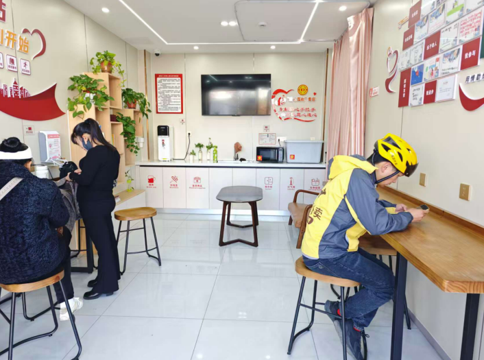12月2日,寒意渐浓,固始县蓼城街道幸福社区的“爱心驿站”却暖意涌动。外卖骑手汪刚送完手中订单,就赶紧走进驿站,接过志愿者递来的热水,随手将手机连上免费充电线,“现在有了爱心驿站,累了能歇脚、渴了有热水,连手机充电都不用愁!”